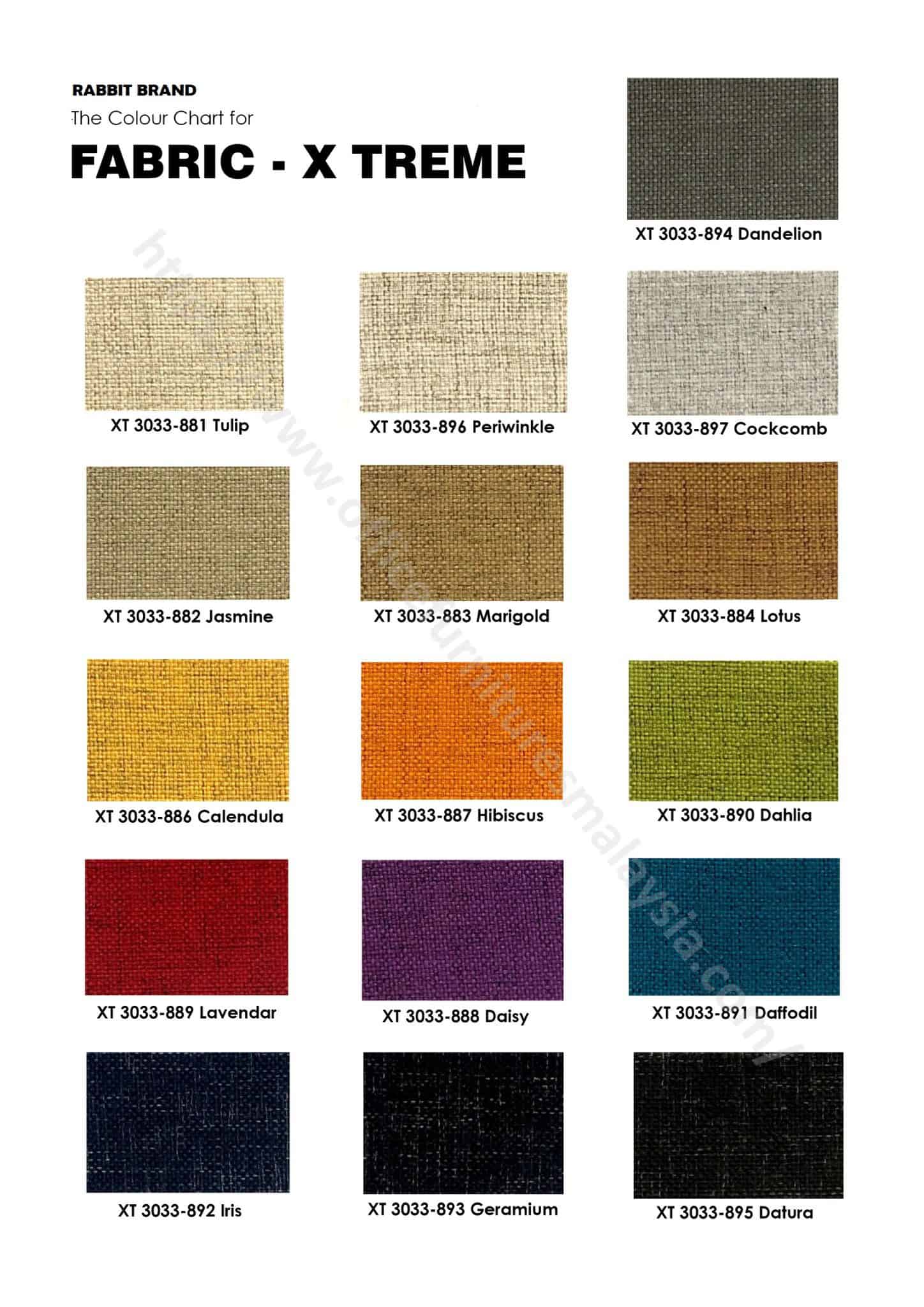 - Fabric Color Options: Refer To Color Chart Above